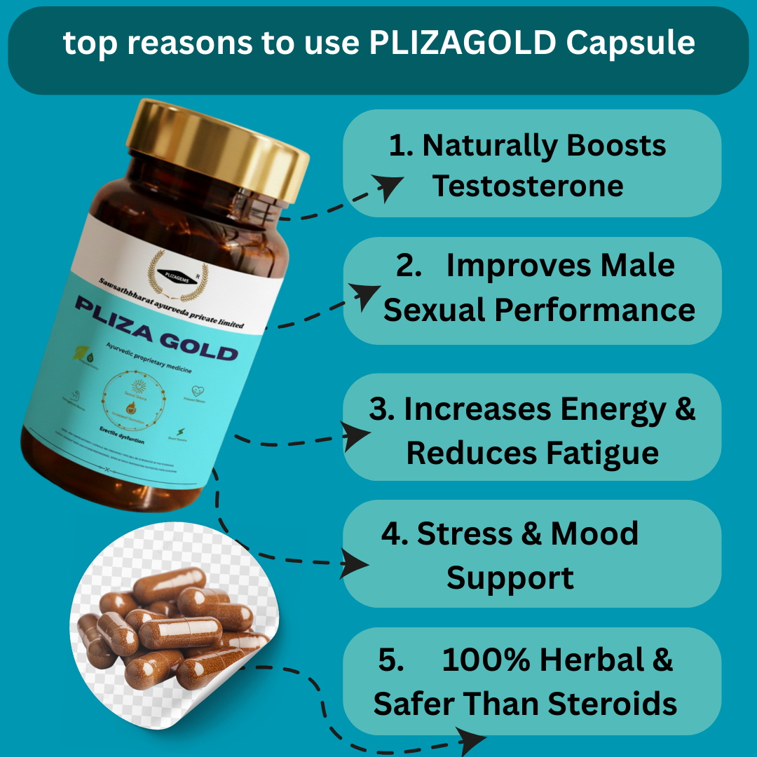 PLIZA GOLD एक ultra-premium Ayurvedic formula है जो पुरुषों की inner strength, performance, और daily vitality को अगली लेवल तक ले जाने के लिए बनाया गया है 💪🔥