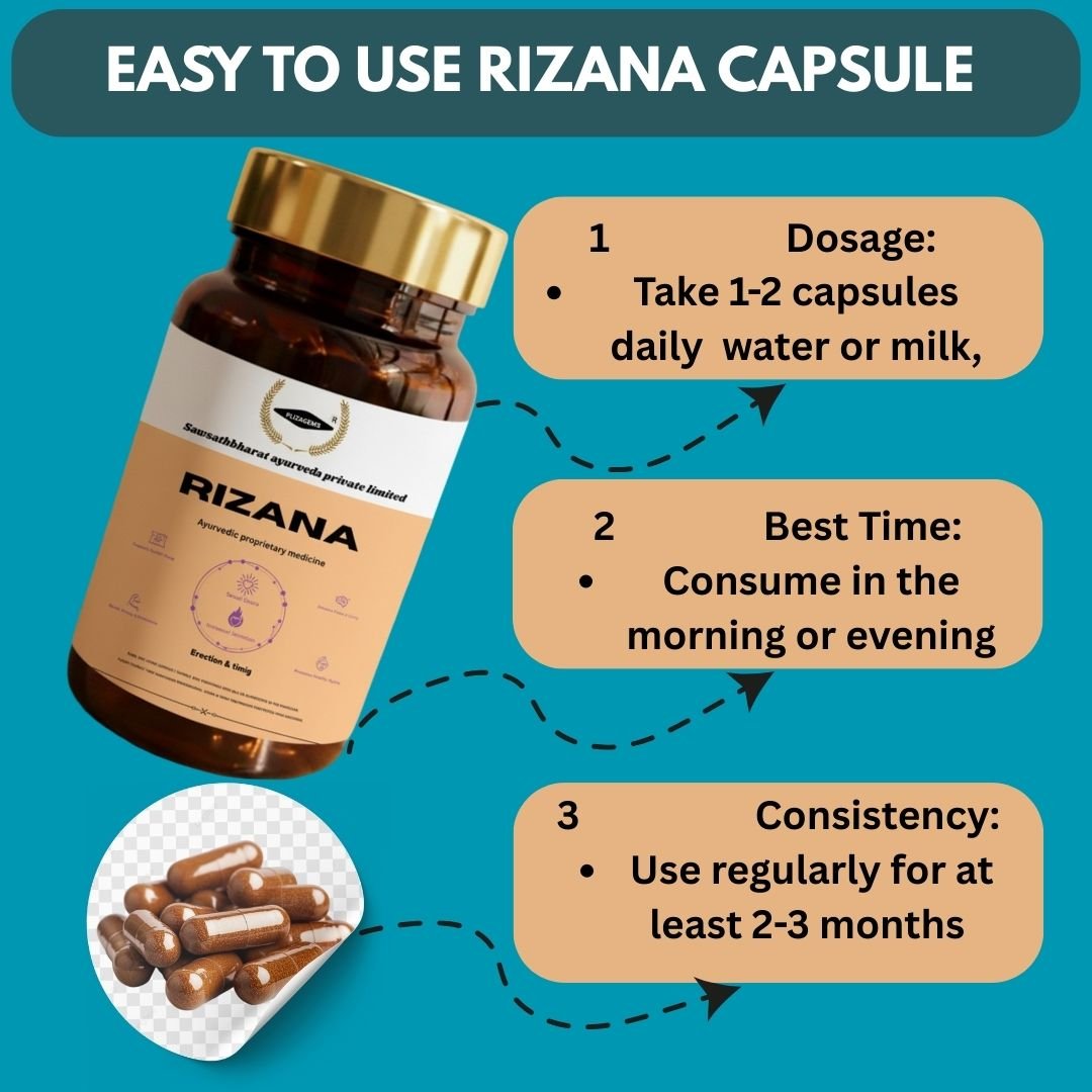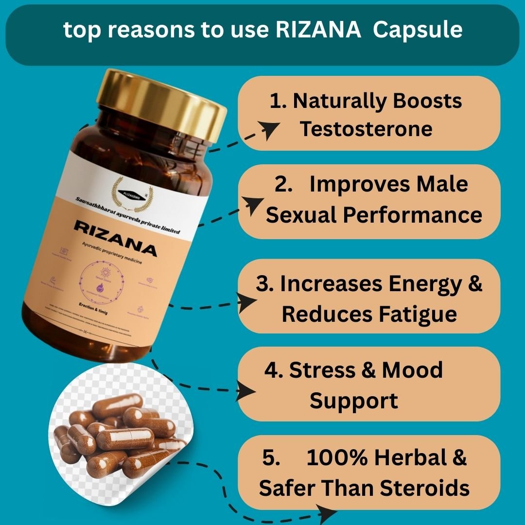 RIZANA एक प्रीमियम आयुर्वेदिक फ़ॉर्मूला है, जो आपकी मर्दाना ऊर्जा, ड्राइव, और परफॉर्मेंस को भीतर से रीचार्ज करता है।